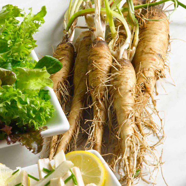 Vaaleat, kellertävät juuret 20-25 cm pitkiä. Erittäin kaunis ja koristteelinen kukinta toisena vuonna.