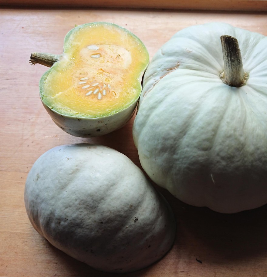 Kaunis litteän pyöreä, vaalea pintainen ja kevyesti uurteinen hedelmä painaa keskimäärin 4-8 kg. Makea hedelmäliha on kirkkaan oranssi. Satoisa.