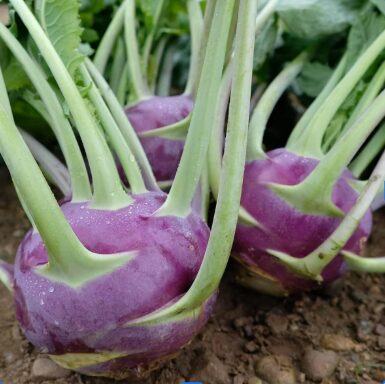 Iloisen raikkaan värikontrastin omaava lajike, jonka kyssä on kauniin violetti ja lehdet varsineen vaaleanvihreät.
