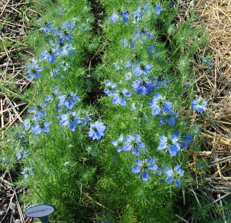 Kukat kauniin indigonsiniset, lehdet tillimäiset. Kukkii pitkään heinä-elokuussa. Korkeus n. 60 cm.
