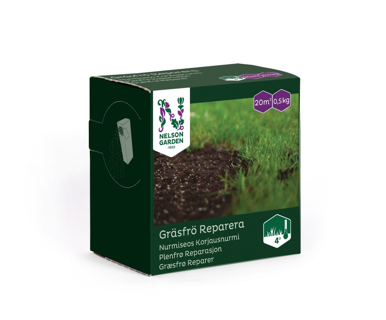 ’Reparera’ on paljaille ja harvoille kohdille tarkoitettu nurmiseos. Itää edullisissa olosuhteissa 4 °C lämpötilassa viikon sisällä. Täyttää nopeasti paljaat tai harvat alueet kestävällä nurmella ja tekee haastavammastakin nurmesta vehreän.