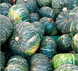 Sinivihreäkuorinen hokkaidokurpitsa muodostaa noin 1,5-2 kg painavia, litteänpyöreitä hedelmiä. Hedelmäliha keltaoranssia. Hyvä säilyvyys.