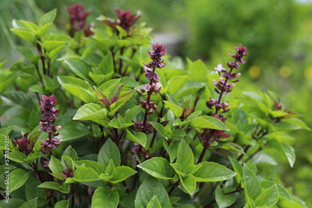 Thaimaassa kutsutaan horapaksi. Ulkonäöltään muistuttaa tavallista basilikaa, on hieman tanakampi ja pensasmaisempi. Varret punertavat. Kasvaa n. 40cm korkeaksi. Kukat kauniin purppuranpunaiset. Maku voimakkaan mausteinen, muistuttaa sekä kanelin että aniksen aromia.