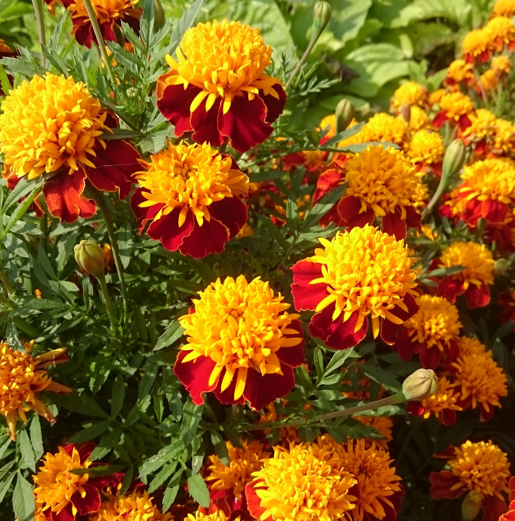 Hurmaava ja huomiota herättävä värien yhdistelmä: yksinkertaiset tai kerrotut kukat tumman mahongin ja keltaisen yhdistelmiä muistuttaen silmiin tuijottavaa pantteria. Korkeus n. 45cm. Säänkestävä. Reunuskasviksi ja leikkokukaksi.