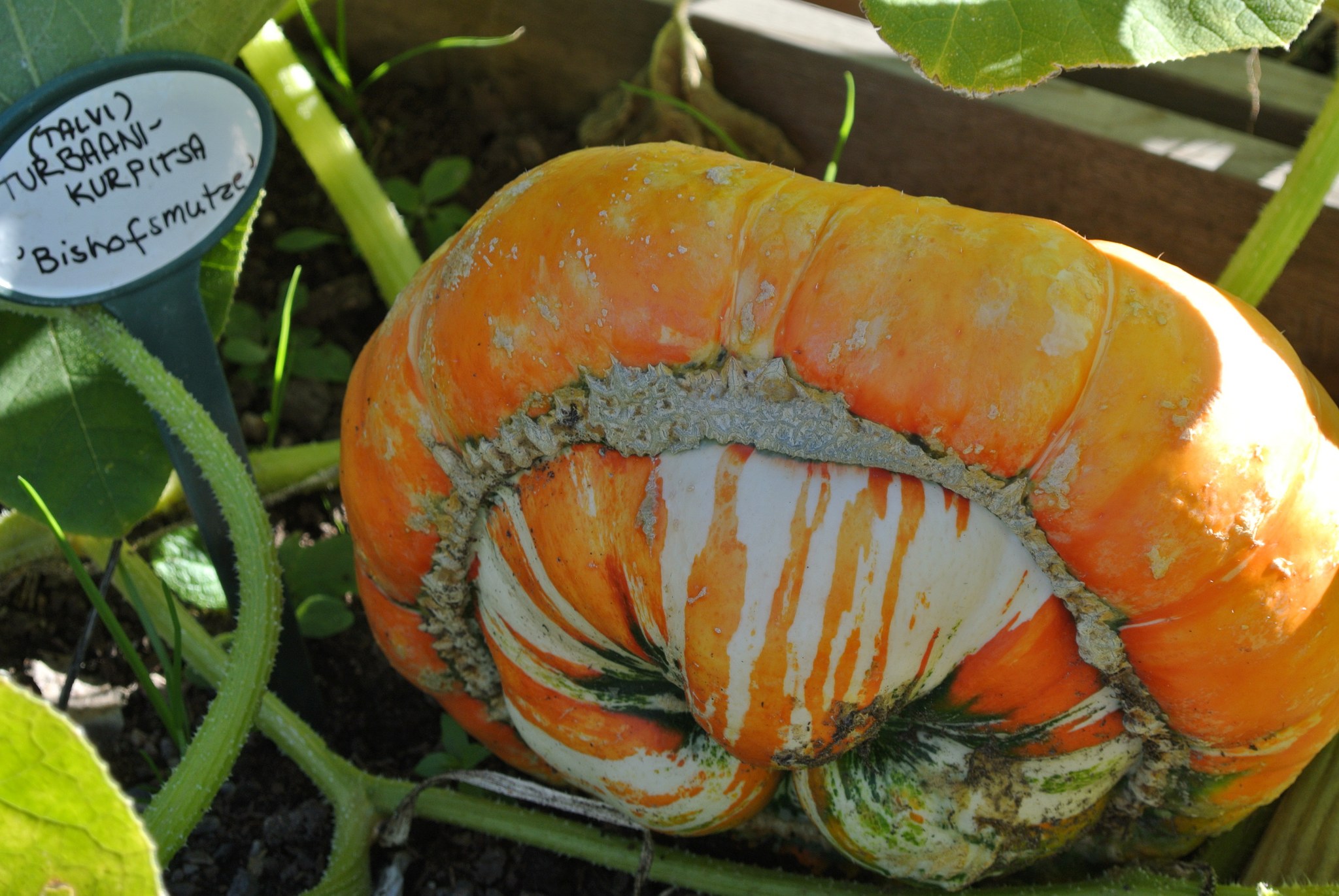 Muistuttaa turbaania. Väri voimakas oranssi vihrein, kermanvärisin ja punaisin raidoin. Köynnöstävä, ei kuitenkaan rotevakasvuinen. Hedelmä 15-25 cm pitkä ja paino n. 1-2 kg. Oranssi malto on maukasta. Käytetään etupäässä koristekurpitsana, mutta ei pitäisi unohtaa, että se on herkullista syötynäkin.